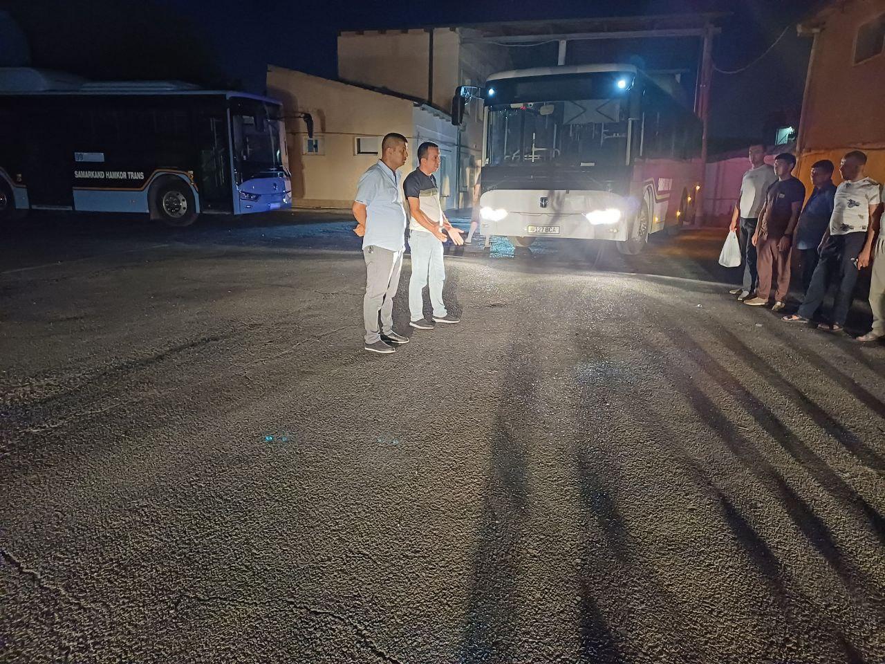 Yo‘l qo‘ygan kamchiliklari hamda talablarga xilof ravishda “konduktor yollaganligi uchun davlat raqami belgisi 30/037 BCA bo‘lgan avtobus haydovchisi N.F.ga “Samarqand Hamkor trans” MChJ rahbariyati tomonidan qonunchilikda belgilangan tarzda intizomiy jazo chorasi qo‘llanildi. Holat qayta takrorlansa, u bilan tuzilgan mehnat shartnomasi bekor qilinishi yuzasidan haydovchisi N.F. ogohlantirildi.
