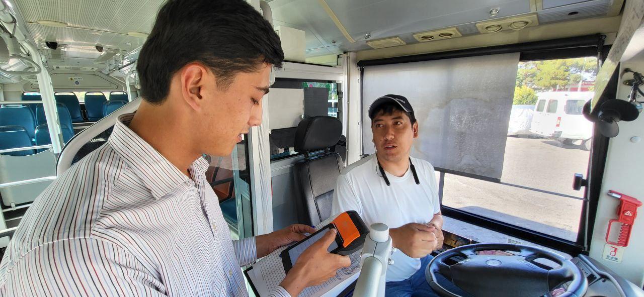 “Yo‘lovchi tashishni monitoring va nazorat qilish” Davlat muassasasi mutaxassislari tomonidan joylarda avtobuslar va haydovchilarni bevosita nazorat qilish brutto-shartnomasi talablari bajarilishi monitoring mexanizmlaridan biri.