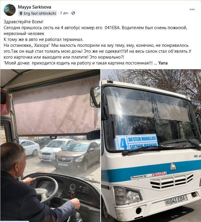 Mazkur murojaat viloyat Transport boshqarmasi tomonidan nazoratga olindi hamda o‘rganib chiqildi.
